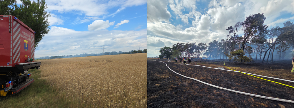 Durch die Leitstelle wurden wir mit dem Stichwort "Getreidefeldbrand" auf die Landesstraße 44 zwischen Samswegen und Groß Ammensleben alarmiert. Bereits auf Anfahrt war eine massive Rauchentwicklung sichtbar. Nach Eintreffen wurden durch den Einsatzleiter umgehend mehrere Einsatzabschnitte gebildet. Die Einsatzkräfte unserer Feuerwehr unterstützen gemeinsam die anderen Einsatzkräfte bei der Brandbekämpfung, welche sich aufgrund der Größe, der Wärme und der Windstärke als sehr schwierig gestaltete. Im Einsatzverlauf mussten mehrmals weitere Feuerwehren nachgefordert werden, ausserdem waren mehrere Landwirte mit Grubbern zur Unterstützung im Einsatz. Nach über 7 Stunden konnte der Einsatz dann schließlich vorerst beendet werden. Durch die Feuerwehren der Niederen Börde wurde im Anschluss eine Brandwache eingerichtet.